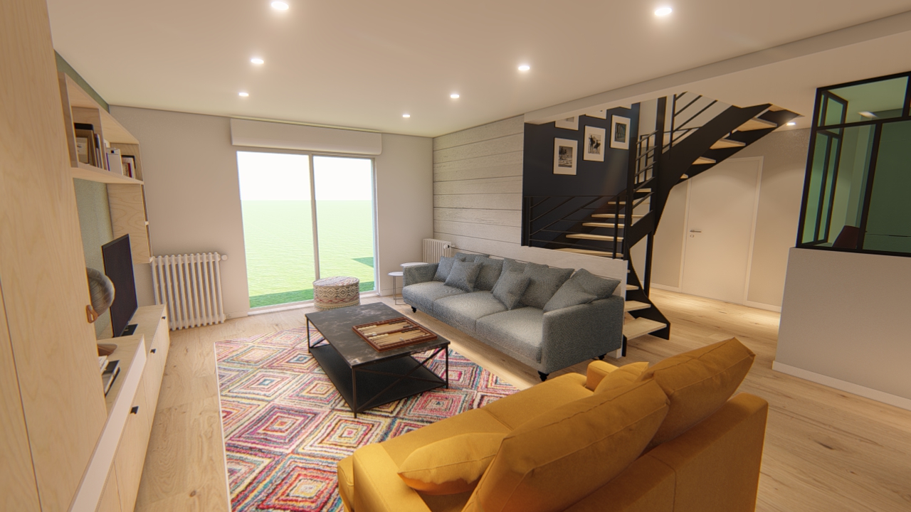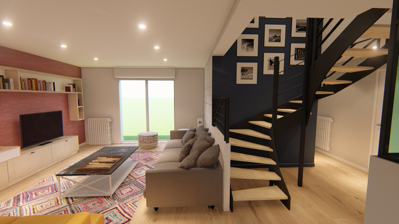 Les agencements ont été réalisés par LVL agencement, les peintures par O en couleurs, le carrelage par Richard Ollier et l’escalier et la verrière par Xavier Le bihan.